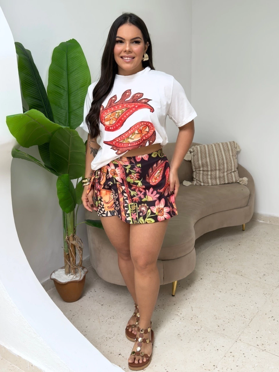 - Short modelo saia, contem ziper e elástico.